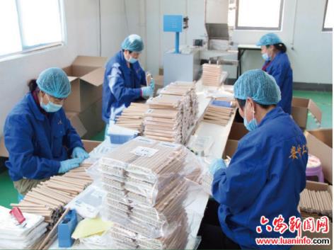 成立于2008年3月的舒城县安竹工艺品厂是一家主营竹制品加工销售的外向型生产企业,产品有花结串、珠串、竹包装盒、竹寿司卷、竹餐具等,主要出口欧美、澳洲及东南亚地区。该厂采取公司+加工大户+农户模式,厂内包装人员50多名,外发加工人员200多名,下辖50个加工大户,由加工大户将竹篾、竹签发给农户,农户领料回家加工,完成后交回加工点,再由各加工点大户送至工厂,进行包装发货,间接带动3000多人就业,其中贫困户800多人,人均年增收5000元到20000元不等。