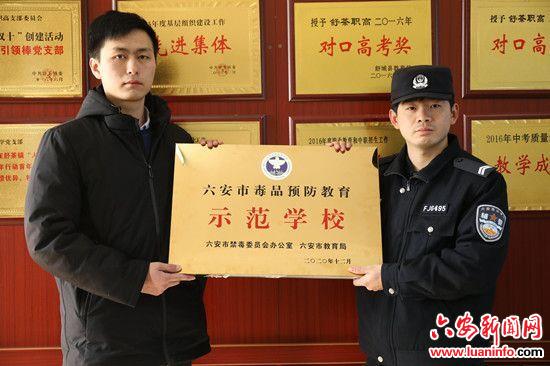 近期,安徽省六安市舒城县舒茶初级中学被六安市禁毒办、市教育局认定为“全市毒品预防教育示范学校”。1月19日,舒城县公安局禁毒大队联合县教育局、舒茶派出所来到该校,颁发牌匾并就持续加强青少年特别是在校学生的毒品预防教育作进一步动员,确保示范学校以“教育一个孩子、带动一个家庭、辐射整个社会”为目标,为青少年健康成长做出不懈努力。据悉,此次被市级认定的学校全市共24所。 (皖西日报社融媒体记者 姚迪)