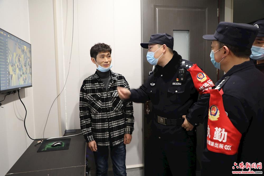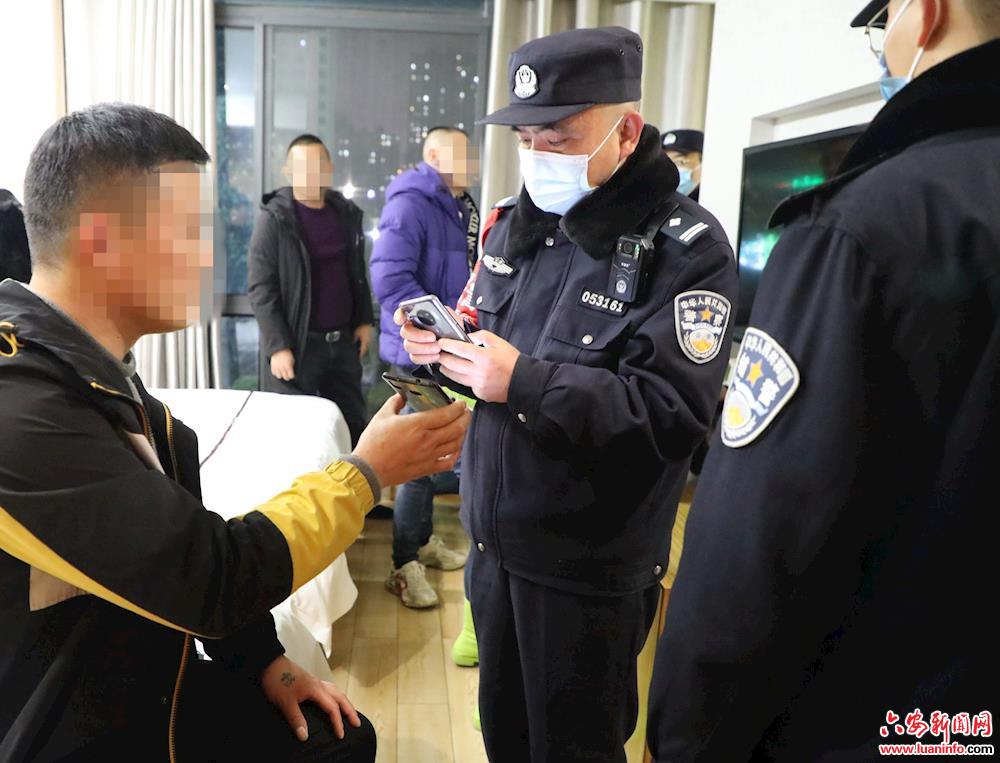 当晚8点记者跟随市公安局治安支队及金安分局、裕安分局的民警来到多家茶楼、棋牌室进行检查,发现有多家营业场所存在一些不规范的经营行为,包括茶楼包厢内摄像头放置有问题,宾馆前台人员登记不详细等,民警当场要求他们立刻整改。据介绍,此次统一行动全市公安机关共出动警力2713人,出动车辆615辆,清查娱乐场所1724家,消除隐患173处,查处违法犯罪人员67人,抓获逃犯5人。( 皖西日报融媒体记者 王丽 摄)