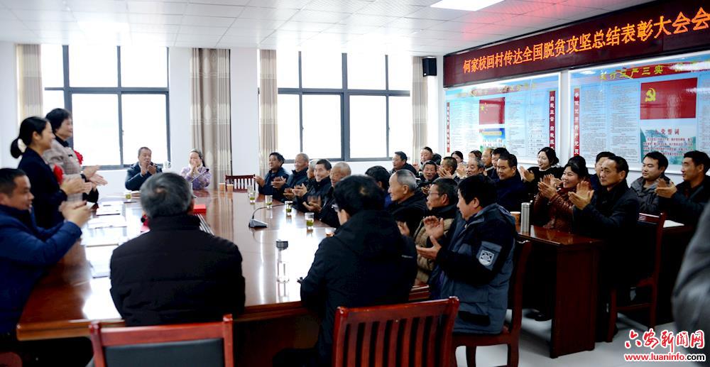 何家枝回村传达全国脱贫攻坚总结表彰大会会议精神