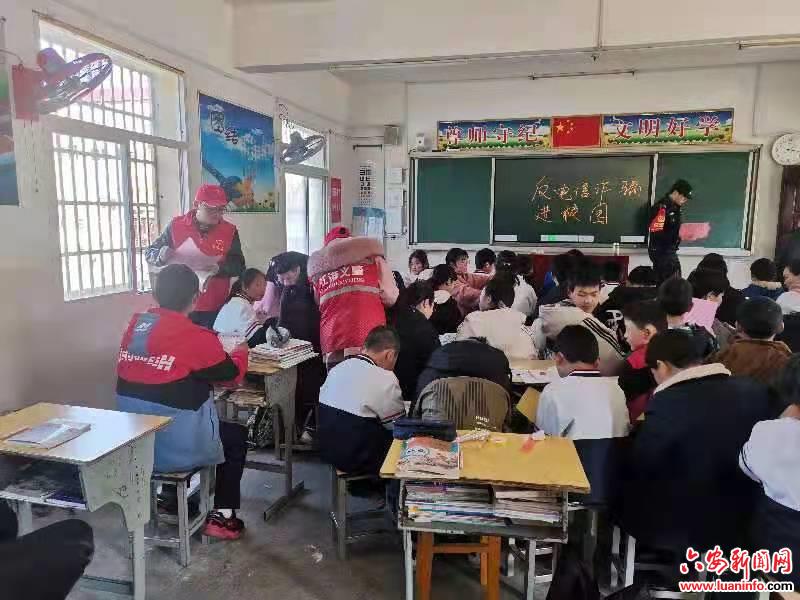 金寨县麻埠派出所:联合江淮义警开展“反电诈 进校园”宣传活动