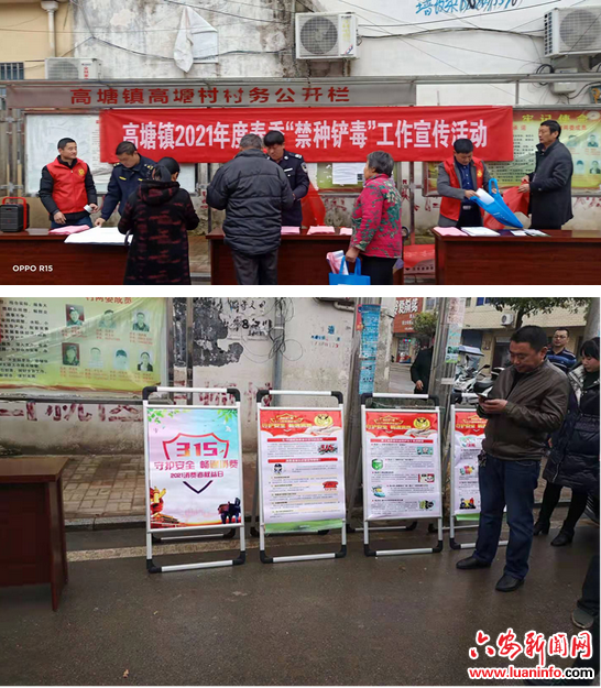 为全面推进禁种铲毒工作,有效打击毒品原植物种植行为,彻底铲除毒品隐患根源。2021年3月15日,霍邱县高塘镇结合“315消费者权益保护日”组织开展禁种铲毒宣传活动。