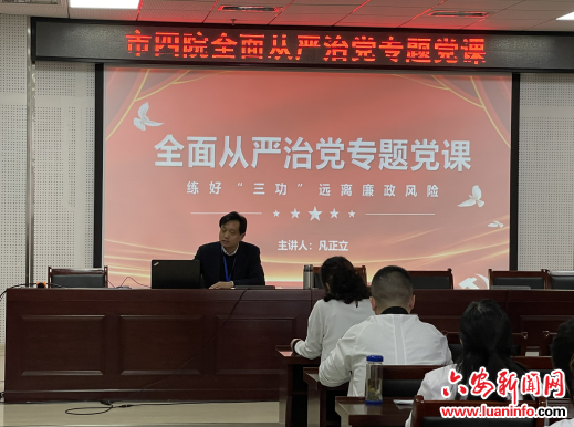 为切实加强党风廉政建设,坚持党的全面领导,推进全面从严治党向纵深发展,4月29日下午,市四院党总支书记、院长凡正立同志为领导班子成员、所有中层干部、全体党员作了题为《全面从严治党:练好“三功” 远离廉政风险》专题党课。