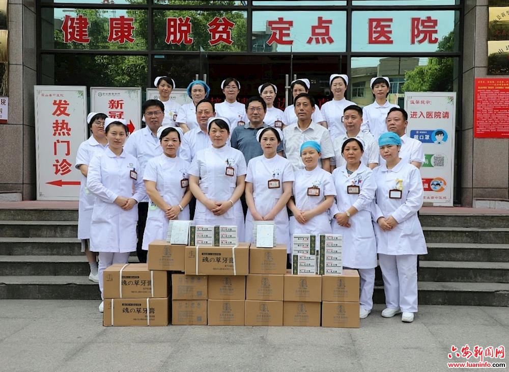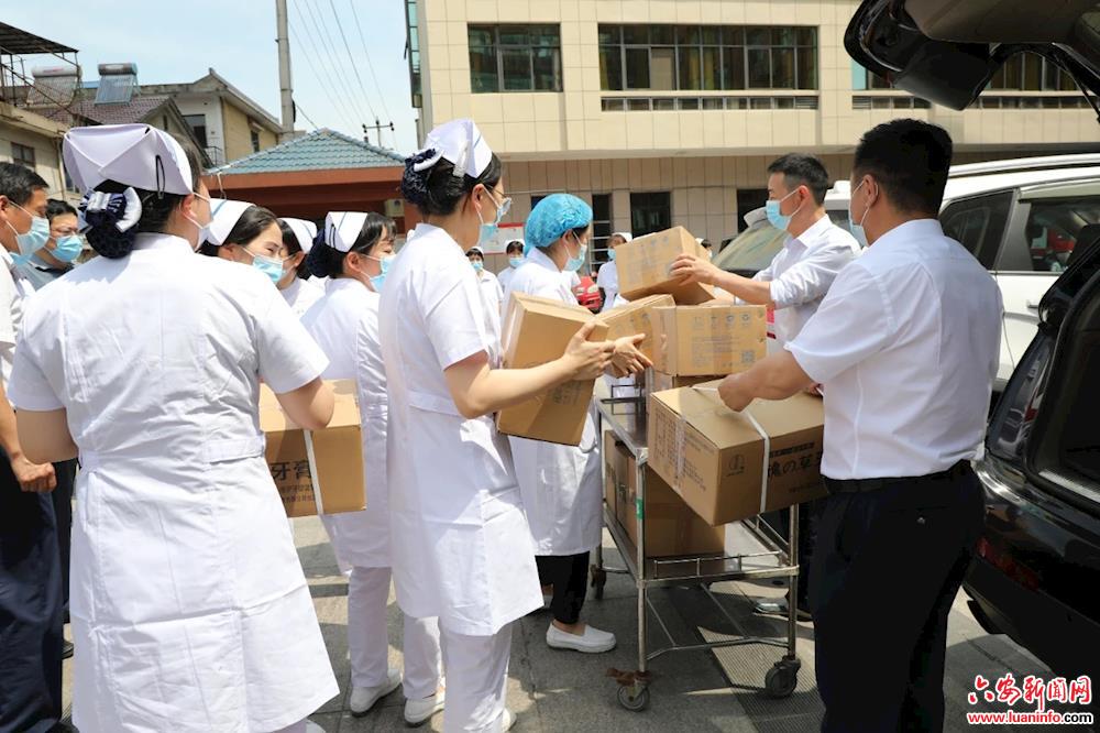 在国际护士节来临之际,霍山县中医院的白衣天使们提前收到了一份特殊的节日礼物。5月10日早晨,安徽迎驾集团办公室主任陈万青、安徽大别山霍斛科技有限公司总经理陈兆东一行将近300盒面膜和牙膏(价值6万多元)送到县中医院,向该院白衣天使致以节日的问候。