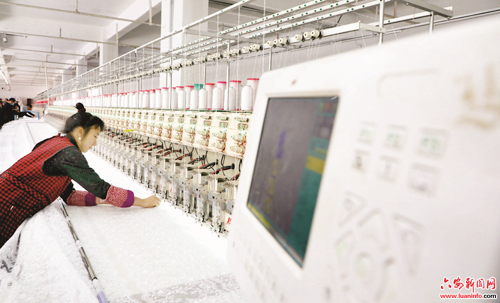 近日,裕安区丁集镇新时代婚纱厂里,工人正在流水线上忙碌着。近年来,丁集镇瞄准东部产业转移大局和苏州虎丘地区婚纱市场拆迁转移机遇,吸引婚纱企业入驻,实现了婚纱产业从无到有、从小到大的渐进式发展。目前,“中国·丁集婚纱特色小镇”项目一期启动区已经建成并投产运营,已有400余户商户入驻,年产值预计达10亿元;境内已有大小婚纱企业近500家,婚纱产业年产值超8亿元,从业人员超过1.5万人。2020年全镇农民人均纯收入达到18400元。(皖西日报融媒体记者 袁洁 摄)