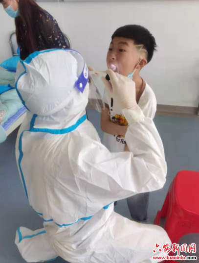 时值盛夏,炎热的天气,密闭的防护服,紧张的病区环境,对于精神和身体都是巨大的考验。穿上防护服进入病区,汗水很快就浸透了衣服,雾气模糊了防护面屏。病区里都是发热的患者,孩童哭泣声,家属焦躁情绪,病区紧张而有一丝恐怖的气氛、、、给我内心巨大的震撼,此刻的我,完全忘却了害怕和疲惫,全身心的投入在病人的治疗以及心理疏导中。