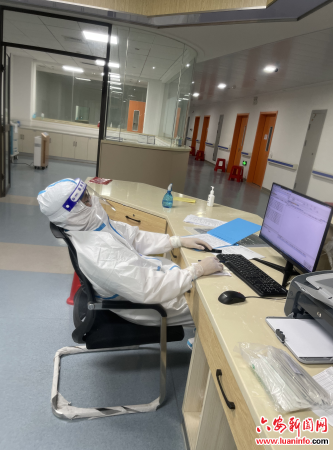 繁重的工作,没有打消我工作的热情和战胜疫情的信心。连续的工作后,一个夜班的晚上,在问诊和收治十余名发热患者后,凌晨时分我终于疲惫的在工作台前睡着了。可我心中惦记着新入院的数十名患者,手中的笔仍不舍得放下去,总想着再为他们做点什么,哪怕是简单的言语安慰。