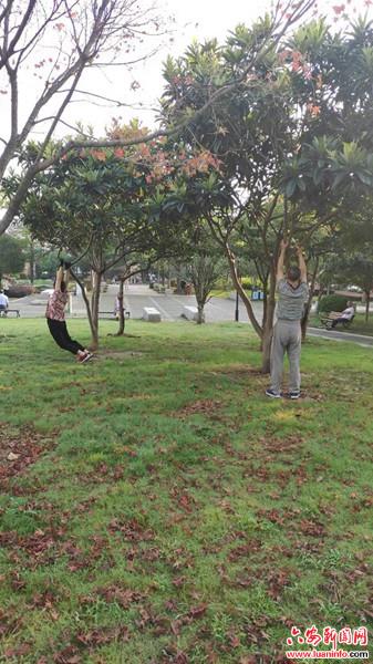 记者发现,景区这些不文明行为居然发生在大人身上,抓着树枝做运动,很不安全的同时也导致树木的损坏 。工作人员说,这几年随着大家文明意识的提升,游客的不文明行为少了很多。可随手扔垃圾和折毁树木的 这些不文明行为仍有存在的,每次节假日一过,一些原来绿油油的草地就被踩出小路了。