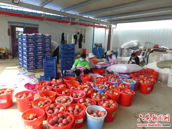 初秋时节,走进位于舒城县干汊河镇靠山村的安徽董郎农业产业园,看到村民们正在忙着分检包装成品桃子,一筐筐品质优良的鲜桃正装车发往全国各地,呈现出一派丰收繁忙的景象。
