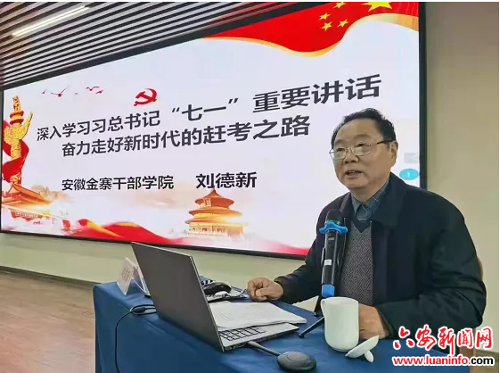 今年9月,中粮贸易在安徽金寨干部学院举办了第一期党支部书记培训班,刘德新教授应邀为该班讲授了《习近平总书记“七·一”重要讲话精神解读》一课,受到了大家的一致好评。这次,刘德新教授以中共100年的光辉历程为背景,从六个维度分别讲述了“一个庄严宣告”、“一个主题”、“四个伟大成就”、“一个伟大精神”、“九个必须”、“一个伟大号召”,全面解读了习近平总书记“七一”重要讲话精神,再次受到广大学员的交口称赞。