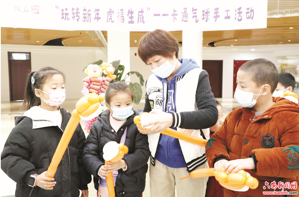 “小朋友们,请大家跟着我一起,把气球的这一节扭一下,再扭一下,看,这像不像小老虎的耳朵?”1日下午,市图书馆的一楼共享大厅内,数十位孩子在气球造型师李敏的指导下,将手中的气球左拧一下,右拧一下。孩子们沉浸在气球的魅力之中,一个指令一个动作仔细学着。学习如何如何制作气球造型。市图书馆开展的这场“玩转新年 虎福生威”卡通气球手工活动,自去年12月30日开放报名以来,名额很快被抢完。从1月1日至3日,市图书馆围绕新年主题推出了4场创意手工类活动,涉及到卡通气球、布艺绘画等,参与者既有孩童也有成人,活动很受市民的欢迎,时常报名一推出就满员。“以前过节基本也就带孩子出门吃一顿玩一玩,但自从市图书馆、文化馆还有科技馆这些文化场馆开馆以后,它们经常在节假日推出一些文化活动、展览,一有机会我就尽量带孩子来参加活动,也是让孩子接受文化艺术的熏陶。”市民何女士说。