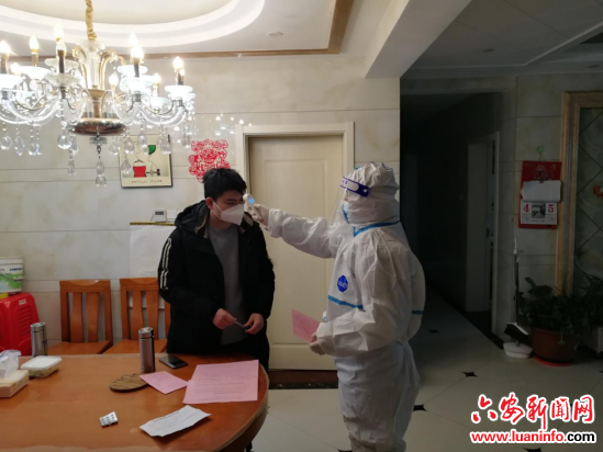 图:对居家隔离人员上门检测体温