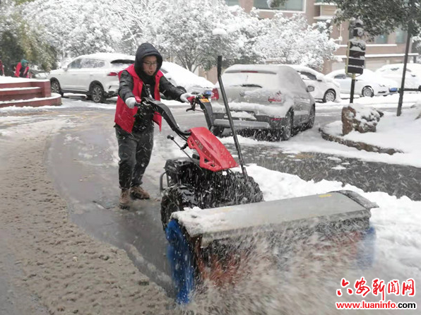 2月6日晚间,六安迎来首场大雪,一片银装素裹,白雪皑皑,带来美丽雪景的同时,也给道路交通、群众生活出行带来诸多不便。为深入贯彻“以人民为中心的发展思想”,最大力度降低冰雪对群众出行的影响,三里桥街道连夜启动应急预案,全员上岗,铲雪除冰,排查安全隐患,保障群众出行和生产安全。