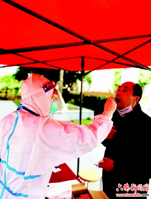 4月4日下午,接到叶集区委、区政府通知,叶集二院要抽调8位医护人员,奔赴六安主城区参加核酸检测。听到有任务了,邵让山又主动请缨,参加六安主城区核酸检测任务。邵让山和同事们到达六安主城区后,一直以饱满的热情投入到核酸检测工作。“其实,不只邵让山医生,我们叶集二院还有很多医护人员任劳任怨,在各自的岗位上坚守医德仁心、治病救人的理念,践行着医护人员的初心与使命。”叶集二院副院长赵先兵说道。(程度厚 文/图)
