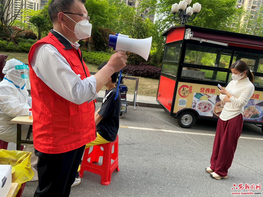 “请大家提前打开手机安康码或者核酸预登记码,相互间隔一米,有序排队,谢谢配合。”4月9日,在裕安区恒大社区的核酸采样现场,多名党员志愿者在现场维持秩序。其中,年近7旬却精神抖擞的老人家叶文祥尤为显眼,他是一名老党员,也是此次参与恒大社区疫情防控工作最年长的一位志愿者。
