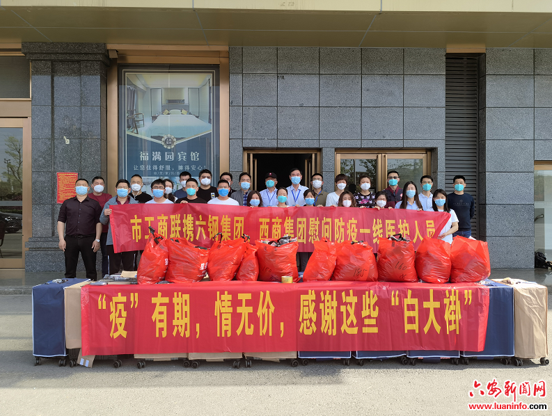 “我代表检测队所有队员感谢市工商联领导,感谢两家爱心民营企业,有了你们的爱心支持,我们一定继续保持昂扬斗志奋战一线,不负党委政府和全市人民重托。”4月10日上午,在市工商联主要负责人的带领下,六钢集团、西商集团向市卫健委移动核酸监检测队捐赠了总价值约4万元的生活保障物资。收到捐赠物品后,检测队队长李朝阳向他们连连表示感谢。
