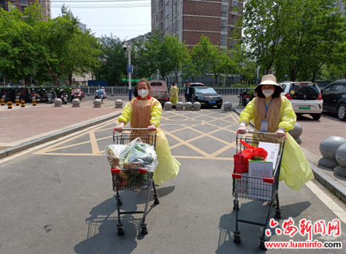 他们中有的人,疫情之前伤了脚,但是依然忍痛不下“火线”,每日为小区居民运送物资;有的人巾帼不让须眉,拖着疲惫的身躯值班值守,为居民运送物资、跑腿采买;有的人主动承担夜间值守工作,24小时坚守小区;有的人联系蔬菜包、联系志愿者,尽全力解决居民的物资供应问题。他们忘记小我,诠释大爱,用自己的点滴行动为抗疫一线奉献力量。