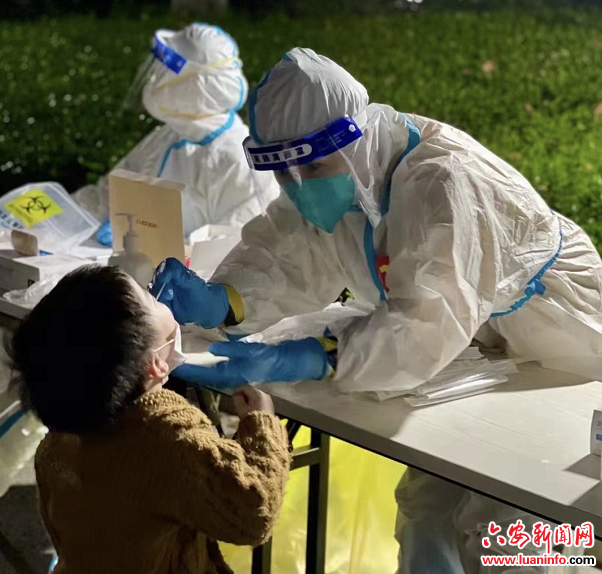 疫情发生以来,舒城县卫健系统共派出外出支援医务工作者600多人次,他们中既有参加过疫情防控工作的老党员,也有刚参加工作不久的入党积极分子。支援工作时间紧、任务重,他们星夜兼程奔赴多个疫情发生地,身着密不透风的防护服,每天工作短则七八个小时,长则达十几个小时,衣服常常被汗水浸透。遇到封控楼栋或行动不方便的人群,他们还要徒步登上三十多层的高楼逐户上门采样,却没有一个人叫苦叫累,依然高质量、高效率地完成每一次采样任务。