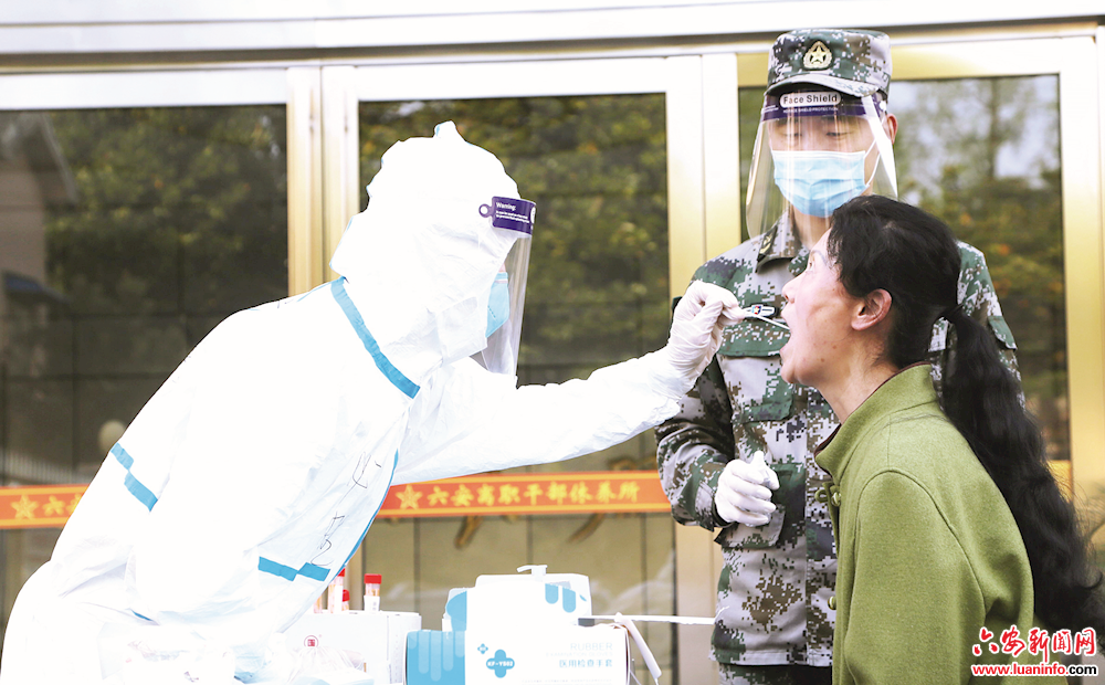 这仅仅是安徽省军区六安离职干部休养所支援社区抗击疫情工作中的一个缩影。自疫情发生以来,干休所已经连续多天支援社区对住户进行核酸检测。据悉,该所营院位于中心城区、人口密集,营院内除干休所保障服务的5名老干部及家属和16名遗孀外,还有近300位住户,而社区卫生服务中心仅有29名医护人员,不仅要开展全员核酸检测,还需要进行流行病学调查、小区封控隔离、密接人员转运等,社区疫情防控压力巨大。
