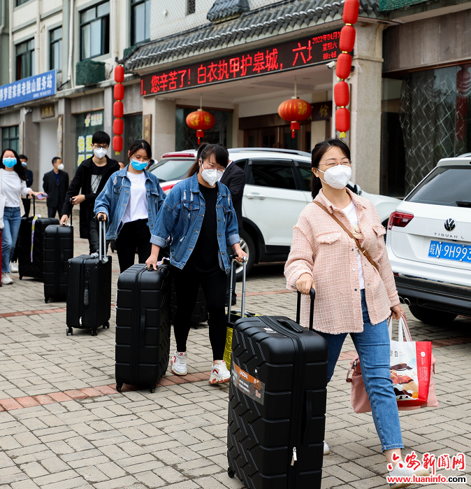 “裕安区和百万老区人民向马鞍山市支援六安医疗服务队表示衷心感谢,致以崇高的敬意,感谢你们一直在苏埠镇工作,坚守疫区,不辞辛劳,夜以继日开展工作,为裕安疫情防控贡献力量,祝你们返程一路顺风。”4月30日上午,带着老区人民满满的感激,马鞍山市支援六安医疗服务队在圆满完成工作任务后,从裕安区独山镇启程踏上归程。市卫健委、裕安区相关领导出席欢送仪式并向他们赠送了锦旗与荣誉证书。