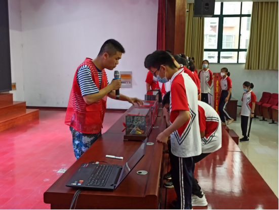 随后,科学普及志愿服务队的志愿者图文并茂地讲述了《杂交水稻之父-袁隆平的故事》,金安区初心志愿者通过模型展示的方式向学生们普及海军历史和海洋知识。活动现场气氛活跃,师生们聚精会神听讲,宣讲员不时和现场师生开展互动,发出阵阵掌声。宣讲结束后,同学们纷纷表示要努力学习,用自己的双手接过红色旗帜并为之不断拼搏奋斗。