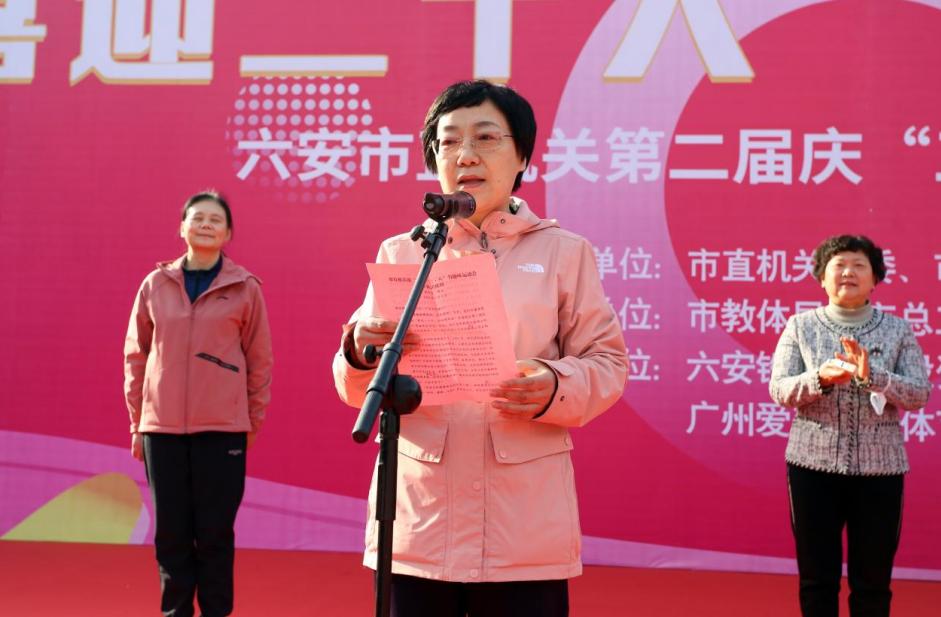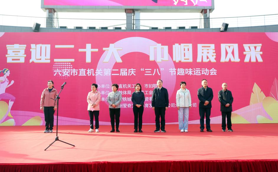为庆祝“三八”国际妇女节,丰富市直机关干部、职工精神文化生活,增强广大干部、职工的身体素质,积极投身六安“绿色振兴赶超发展”建设中去,以良好的精神状态喜迎党的二十大。3月5日,由市直机关工委、市妇联主办的以“喜迎二十大 巾帼展风采”为主题的“三八”趣味运动会在市体育中心成功举行。市领导李敏、司敏、黄应松、魏武、黄昕等出席开幕式。