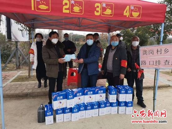 在疫情防控进人焦着对垒的关键时刻,六安市公安局交警支队驻龚岗村第一书记(工作队长)杨林发同志心系支队对口帮扶乡村,迅速贯彻落实支队党委会议关于疫情防控决策部署,2月11日下午,携工作队员一行,到冯瓴乡政府、龚岗村各道路执勤卡点看望慰问战斗在一线排查新冠肺炎的同志们,并送去了急需的口罩、消毒液等防疫物资,还带来了捐助的20箱牛奶,给一线的同志增加营养,增强了一线人员的安全保障,极大地鼓舞了前线同志的战斗热情。(杨林发 彭德华)