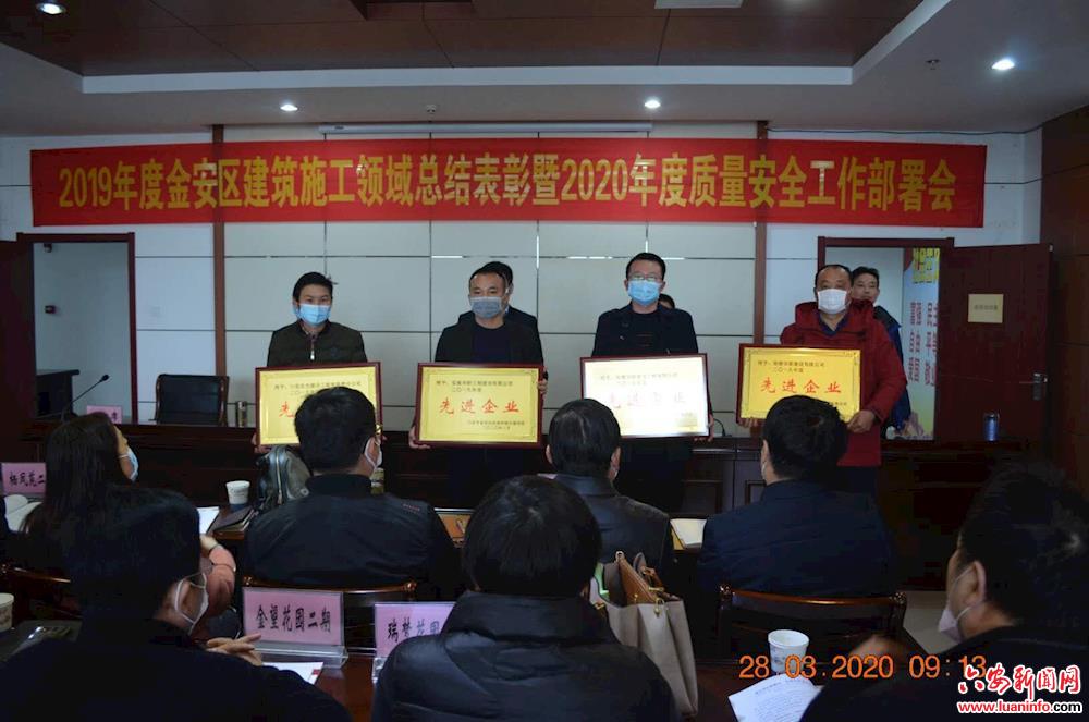 2020年3月28日上午,金安区建筑施工领域总结表彰暨2020年度质量安全工作部署会议召开,按照疫情防控工作要求,邀请了受表彰先进企业、先进个人和相关在建建设、施工和监理单位项目负责人等参加会议,参会人员均按要求进行体温检测和安康码扫码。