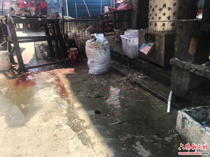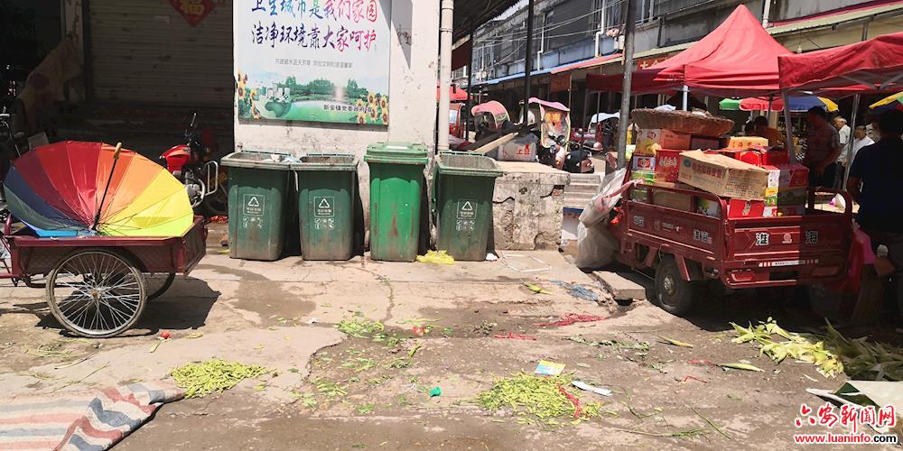 裕安区新安镇街道部分路段人行道车辆乱停放,行人无法通行。新安农贸市场内地面脏乱差,毛豆壳、花生壳、垃圾袋等垃圾随处可见。一家禽屠宰区地面污浊不堪,气味难闻。新安派出所旁边公交站台扫黑除恶宣传标语脱落。(皖西日报融媒体记者 沈春 )