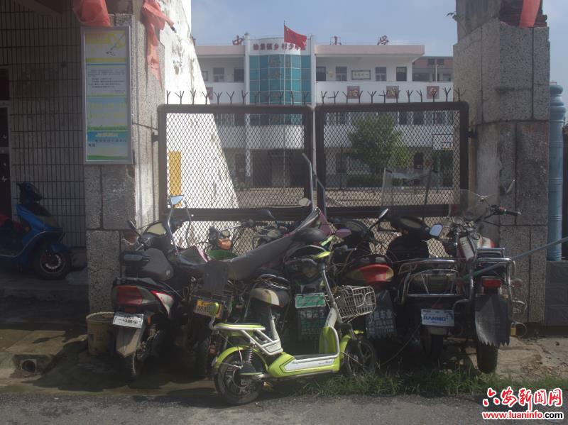 裕安区徐集镇街道一处巷子里纸箱、废弃物品堆放在一起,徐集镇中心小学南门被“僵尸车”包围,六安工业学校(徐集中学)校门口东侧“僵尸车”绵延十几米,学校旁边一处电瓶车修理铺满地污水。学校对面一文具店门口摆满了花盆杂物。