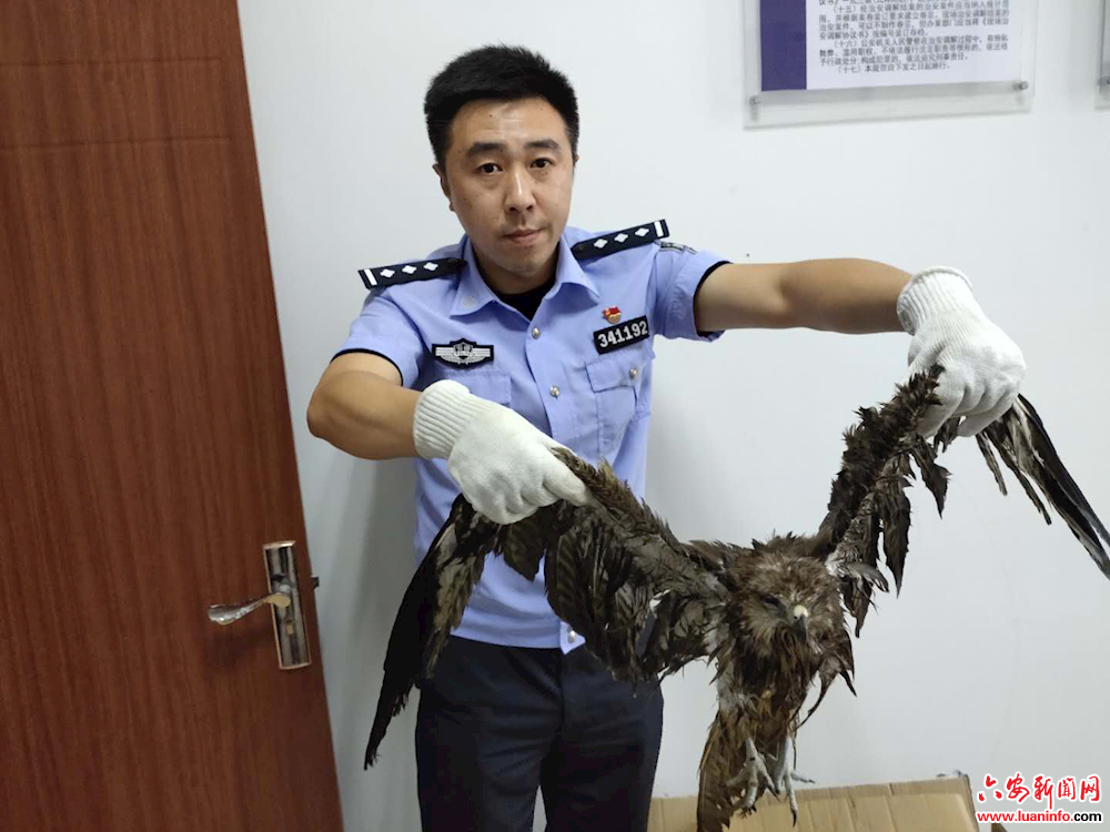 7月14 日14时许,金寨县公安局麻埠派出所接到群众报警称:其在响洪甸水库水面上发现一只落水老鹰,可能是国家级保护动物,请民警前往查看。