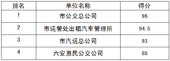 根据《六安市2020年创建全国文明城市工作方案》中主要责任单位行业指导任务分解表要求,15家行业指导单位每月对本系统的创城实地考察点位进行月考核,并于每月5日前向市创城办上报月度测评成绩。现将6月份部分行业指导单位成绩排名情况通报如下: