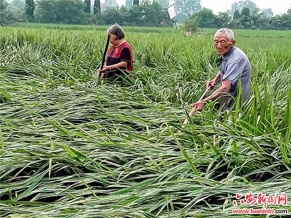 目前,大部分秧苗被大水淹没,大水过后,秧苗上淤积许多淤泥。张启友老俩口,用竹棍清除淤泥,尽量减少洪水带来的损失,力争把受灾损失减到最低。(程度厚)