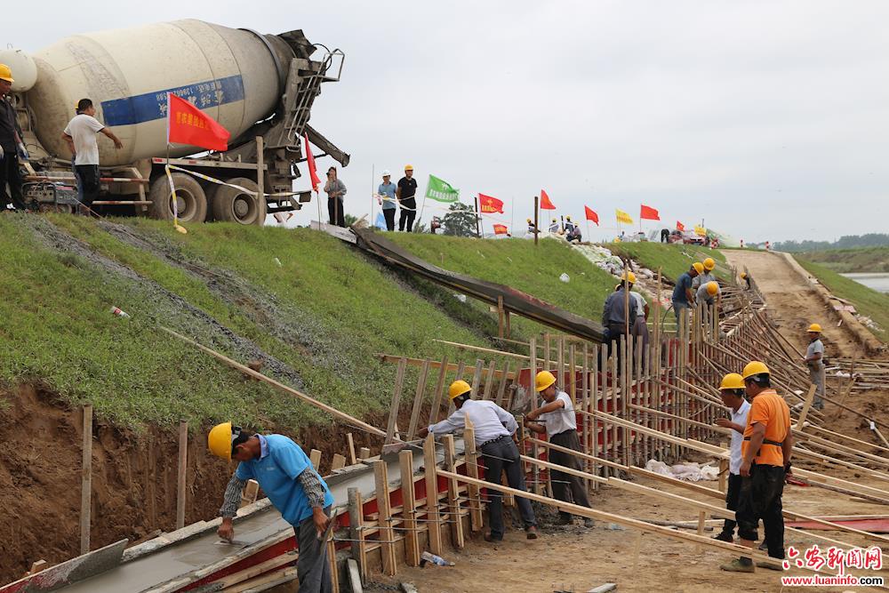 本网讯 “18日傍晚,我们接到金安区应急局指令,双河镇张母桥河堤坝出现险情,要求立即处置,集团公司当即组织70人的抢险队,带着大型机械上堤除险保坝。水退了,抢险队就地转为施工队,修复水毁险段。”23日上午,安徽惠农建设集团有限公司总经理陈孝干在张母桥河枣林村人行桥头施工现场对记者说。