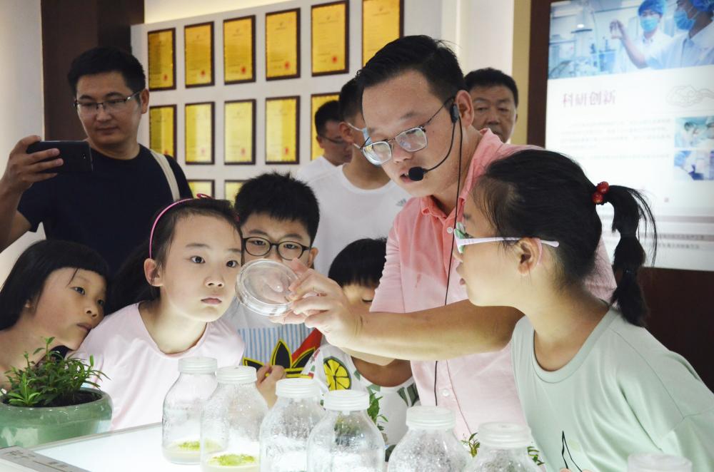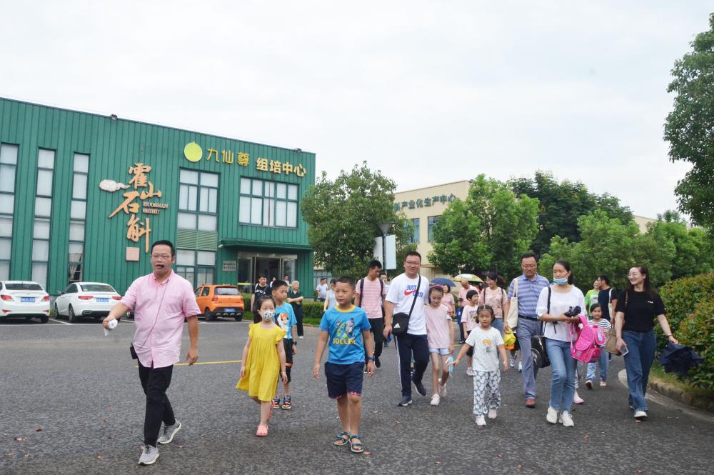 石斛文化园亲密接触传统医药。九仙尊霍山石斛文化园是从事霍山石斛全产业链开发的高新生物技术企业,也是开展石斛科普教育、中医药文化传承教育的重要课堂。大家在讲解员的带领下,先后参观了石斛文化体验中心、名医广场、组培中心、枫斗炮制非遗传承展示室以及西山药库百药园等研学点,孩子们与讲解员热情交流,对平日里接触不多的传统中医药文化产生了浓厚的兴趣。