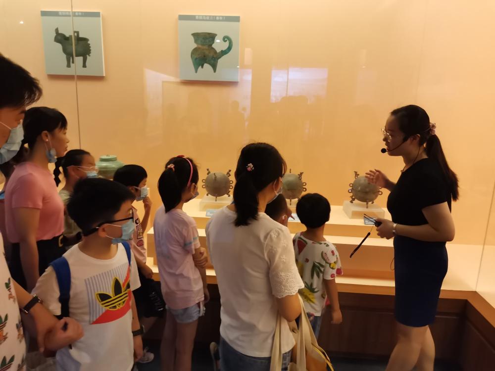 博物馆里了解家乡历史文化。夏令营从全国重点博物馆、省级爱国主义教育基地皖西博物馆出发。首先参观了博物馆“基本陈列”和“七碗清风自六安”茶文化展厅。通过“皋陶魂”“星光灿烂”“八月桂花遍地开”三个单元,了解了皖西在中华文明史和中国革命史中的地位与贡献。从“源、技、器、饮、礼”五个层面,了解了六安茶的发展脉络,特别是现场感受了国家级非遗项目六安瓜片制作技艺。