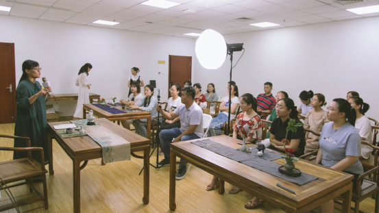 伴随着古韵音乐和声情并茂的解读,吴丹老师向大家介绍了香学的历史,从起源到鼎盛,日益丰富的香篆,作为美学符号所传递出的艺术美感。并现场示范,按步骤教会大家古法篆香的过程。