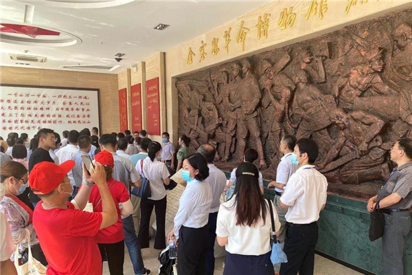 活动过程中还为大家准备了学党史、上党课、学唱红歌,同乘一列车、驶向新时代、传承红色基因、寻找红色拼图等丰富多彩的体验式旅游项目。夜晚时分,红色徒步队伍参观抹茶村长生谷花海灯展。最后的篝火晚会为这一天的红色徒步画上了完美的句号.第二天红色徒步队离开了美丽的独山镇,奔赴全国著名红色革命根据地——金寨县,这里是中国工农红军第一县、全国第二大将军县,是鄂豫皖革命根据地的核心区,“八月桂花遍地开”这首红歌就是诞生于此并唱响全国。当日上午,红色徒步队参观了大湾村,感受了大湾村日新月异的变化。下午,徒步队在红军广场向革命烈士纪念塔敬献花篮,向革命烈士致敬,向过往红色岁月致敬。