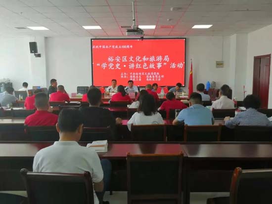 为庆祝中国共产党成立100周年,深入开展党史学习教育。6月21日上午,裕安区文化和旅游局举办了“学党史 讲红色故事”读书征文朗读演讲比赛活动。局党组、局机关、局属各单位全体党员干部职工参会。