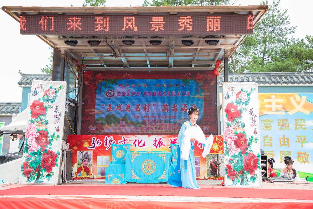 7月份以来,金安区文化和旅游局结合“感恩共产党 奋进新时代”主题活动和“送戏进万村”活动,组织演出单位创作优秀的主题文艺节目,深入各乡镇及村开展了文化巡演,以提升农村公共文化服务水平。在施桥镇,活动在欢快的舞蹈节目《开门红》中拉开帷幕,歌舞《没有共产党就没有新中国》、现代小戏《美丽金安我的家》、小品、黄梅戏、二胡独奏等等,演出节目丰富多彩,经典的旋律、悦耳的歌声、快乐的舞姿吸引着在场每个人。演出精彩纷呈,演员表演十分投入,观众热情高涨,极大的丰富群众的精神文化生活。