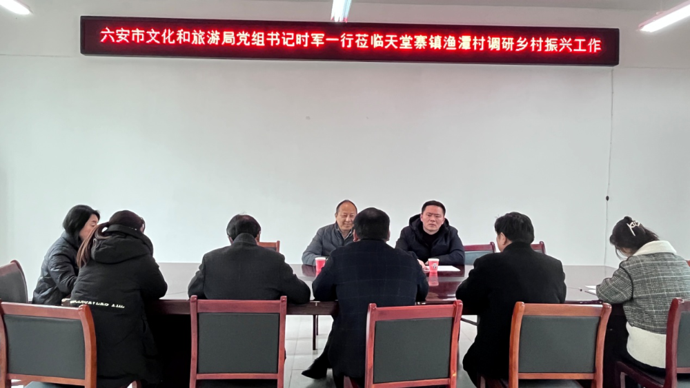 为加快推进结对帮扶村乡村振兴发展,更好发挥党建引领作用,3月18日,市文旅局党组书记时军一行赴金寨县天堂寨镇渔潭村调研乡村振兴工作,并邀请沁居酒店管理(上海)有限公司赴渔潭村考察民宿项目,天堂寨镇镇长杜继铁等陪同考察。