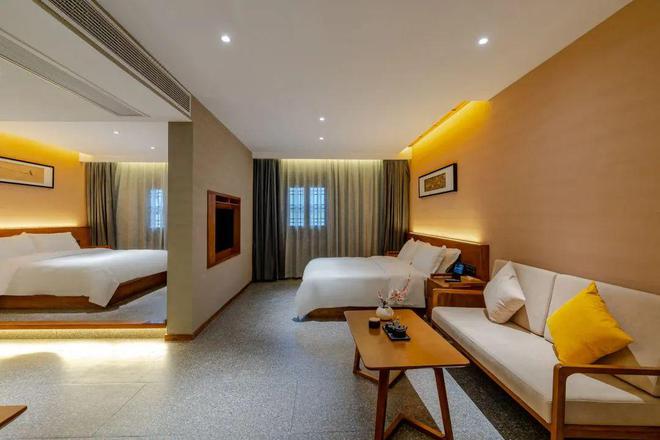 依山而居,伴溪水声入眠,酒店在设计之初即融合了山区自然景观与传统文化交融。酒店拥有客房30余间,智能小度,电动窗帘等智能设施一应俱全。古朴的设计风格与房间现代化设施相映成趣。装修精致典雅,陈设舒适温馨,并提供周到热情,体贴入微的精致客房服务。满足不同客户的各类个性化需求。