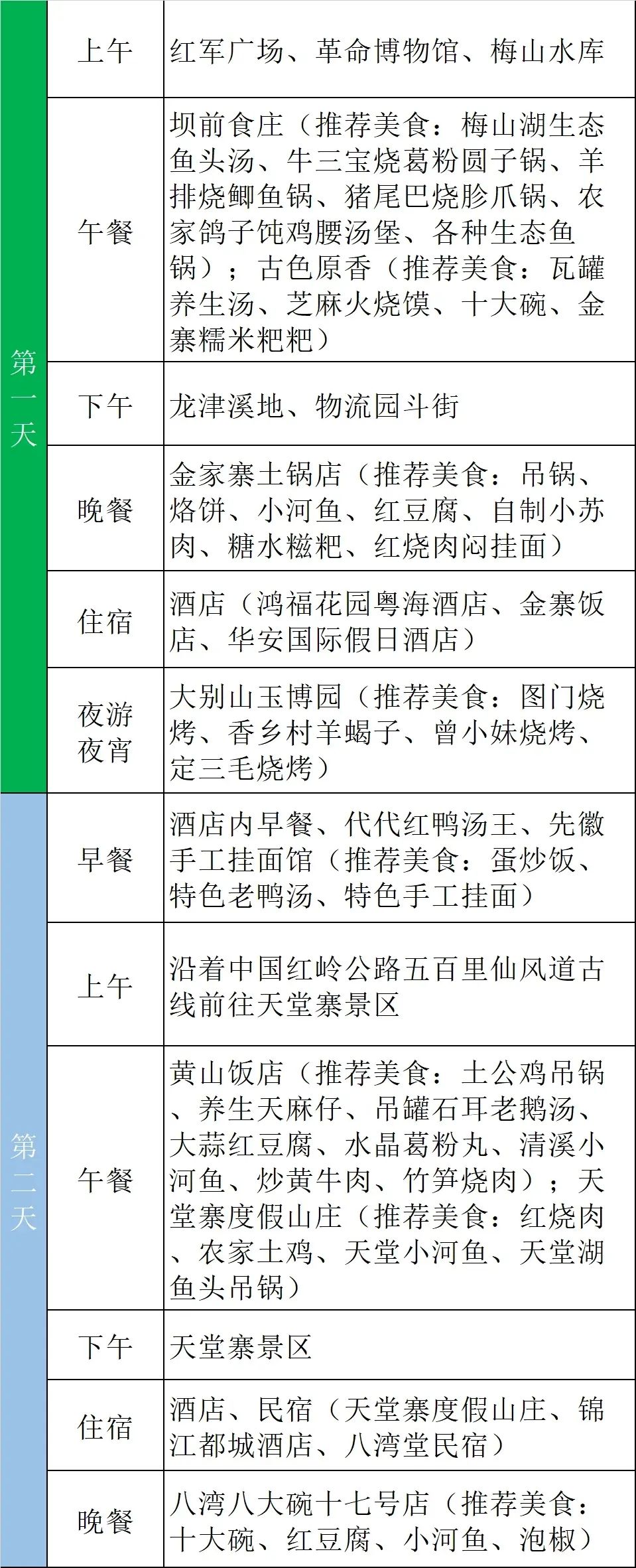 线路:红军广场——革命博物馆——梅山水库——龙津溪地——物流园斗街——大别山玉博园——天堂寨景区