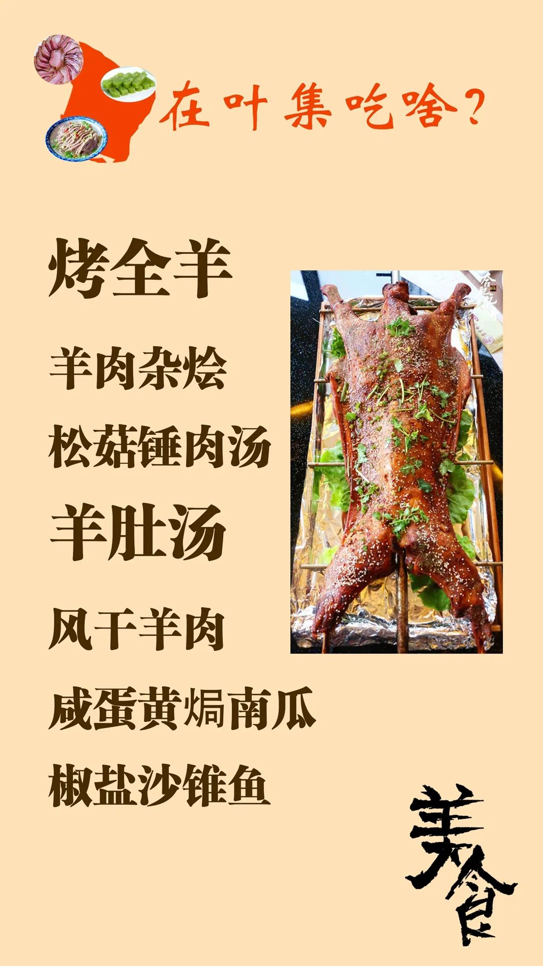 这是要增肌的一天,因为全羊宴抬上来了。到叶集必吃叶集羊肉!滋滋冒油,现烤现吃;甘蔗炖羊,又香又甜;羊肉杂烩,还能放些面……吃羊吃撑了?那再来一碗松茹锤肉汤,吃完还能来碗羊肚汤。