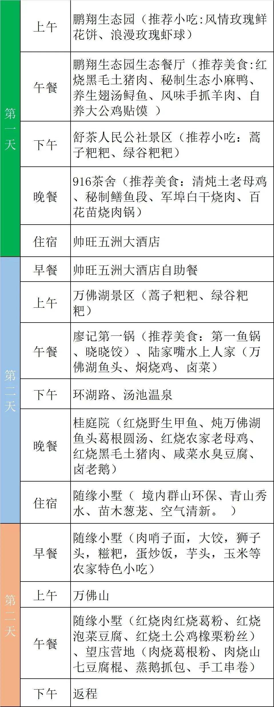 线路:鹏翔生态园——舒茶人民公社景区——开国茶园——古月山庄——文翁纪念馆(春秋三冲环线)——新四军四支队旧址纪念馆——万佛湖景区——随园小墅——万佛山景区——晓天老街