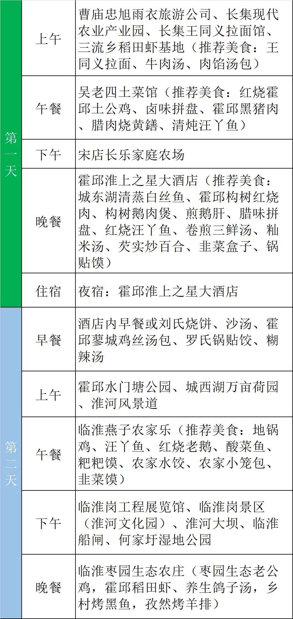线路:曹庙镇皖间小筑——长集现代农业产业园——宋店镇长乐家庭农场——三流乡东湖农庄——三流乡稻田虾基地————霍邱水门塘公园——城西湖乡万亩荷园——临淮岗景区(淮河文化园)