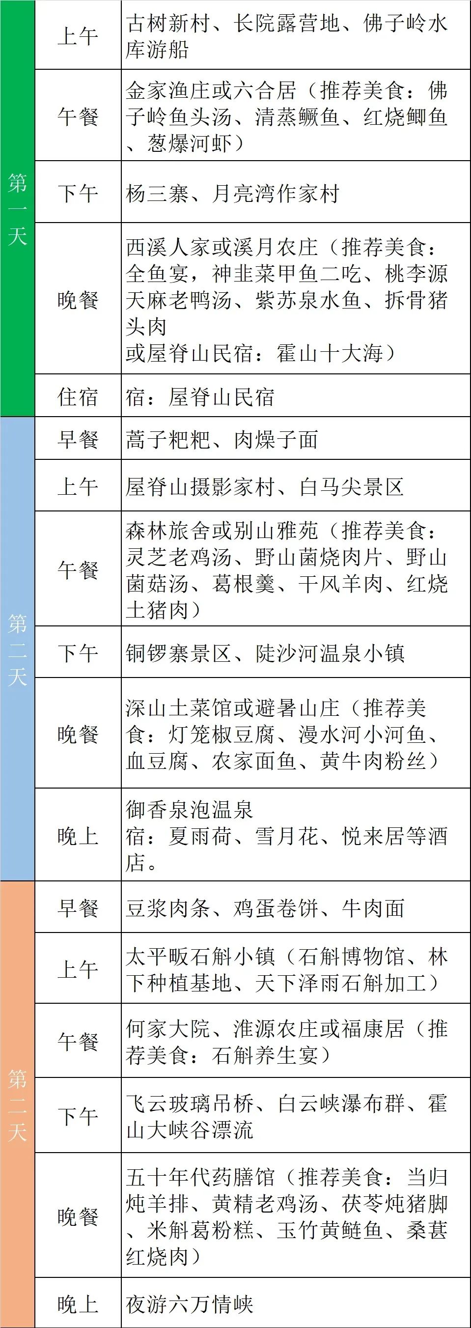 线路:佛子岭景区(龙井冲)——月亮湾作家村——屋脊山摄影家村——白马尖景区——铜锣寨景区——陡沙河温泉小镇——太平畈石斛小镇——霍山大峡谷——六万情峡