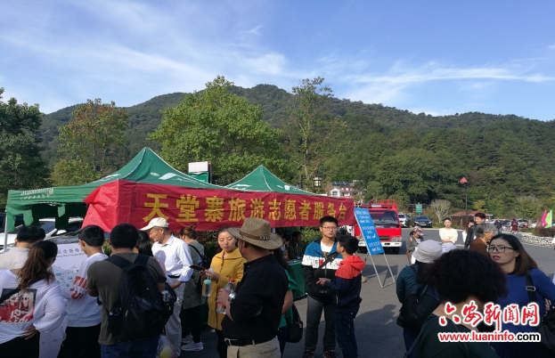 园区内有大小四个停车场,连同景区大门前大型生态停车场、临时停车场,满负荷可停放各类车辆近六千辆。十月二至五日,每日下午离园返程车辆较为集中,为保障游客顺畅返程,每到车辆出园高峰便停收车辆停车费,抬起档杆,免费放行。天堂寨旅游发展公司党总支书记、总经理芦军表示:“我们企业要注重经济效益,更要注重社会效益,扛起社会责任,我们旅游服务行业要做好服务,让游客高兴而来、满意而归”。