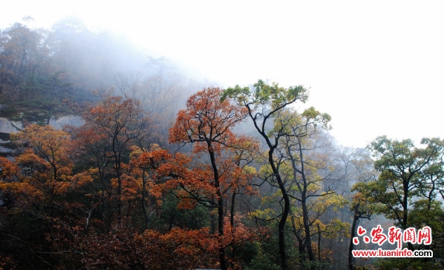 来自全国各地的游客在峡谷中、瀑布旁、山峦上蜿蜒前行,间或在潭边留影、溪边戏水、石上小憩……沉浸在大别山天堂寨的五彩秋色中,享受着共和国69岁华诞举国同庆的美好时光。 (张文斌)