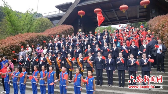 天堂寨“五一”快闪活动登上学习强国。5月1日上午八点,“劳动创造美丽 美丽献给祖国”快闪活动隆重举行。天堂寨游客中心广场台阶上,十名少年儿童挥舞着小红旗缓步走下台阶,随着稚嫩童声唱响了熟悉的旋律“五星红旗迎风飘扬,胜利歌声多么响亮,歌唱我们亲爱的祖国,从今走向繁荣富强······”快闪活动现场吸引了大批游客驻足,景区各岗位工作人员、现场的大量游客纷纷加入了大合唱,歌颂祖国繁荣富强。紧随其后的当地民俗活动舞龙、舞狮更是将“五一”节日氛围推向了高潮,活动还吸引了安徽卫视·第一时间的采访报道。